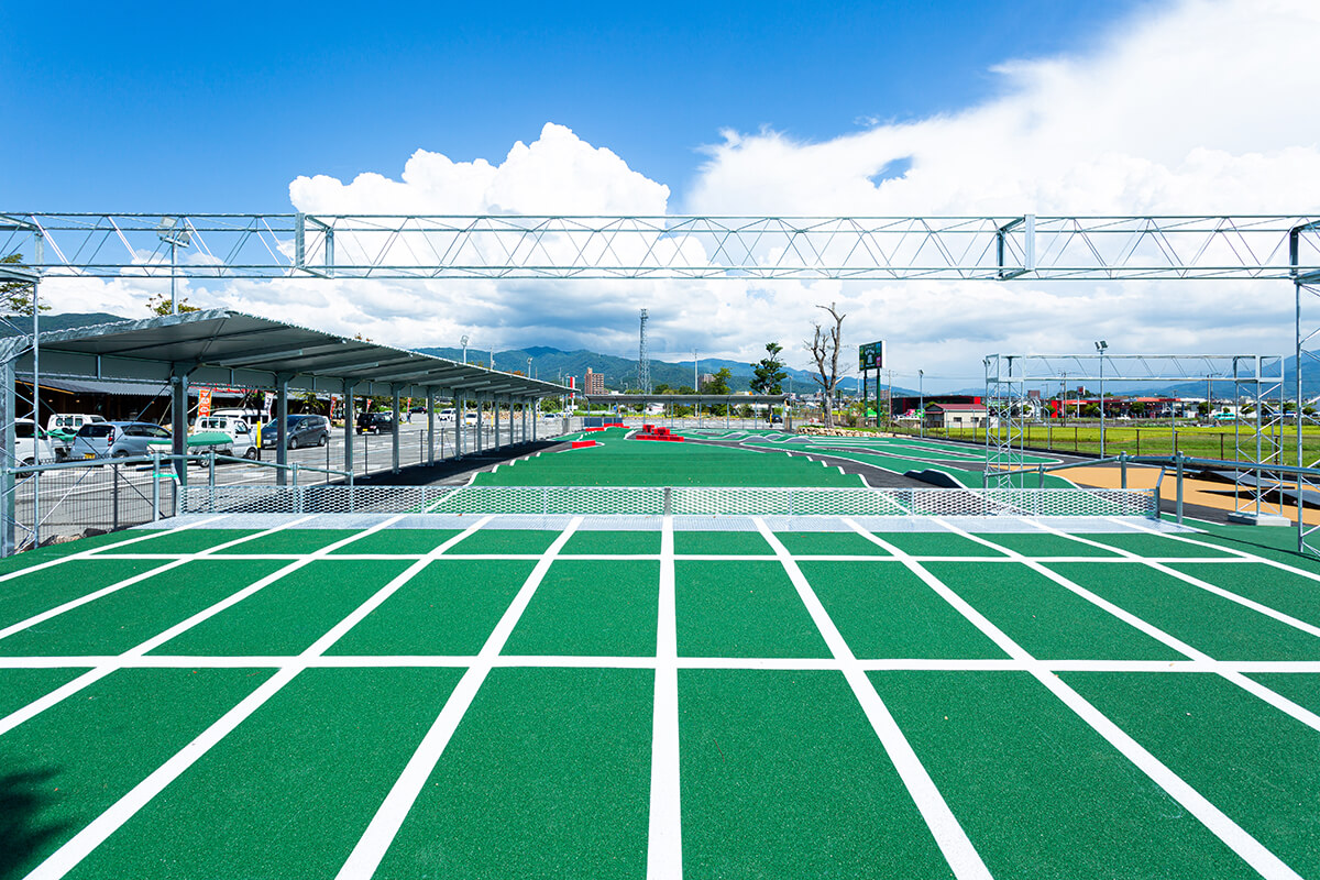 | コースについて | 【路面】 サーキットコース 【コース全長】 2才:約80m 3才:約120m 4才:163m 14x:163m ※多少距離が変わることがあります。 ![]() |